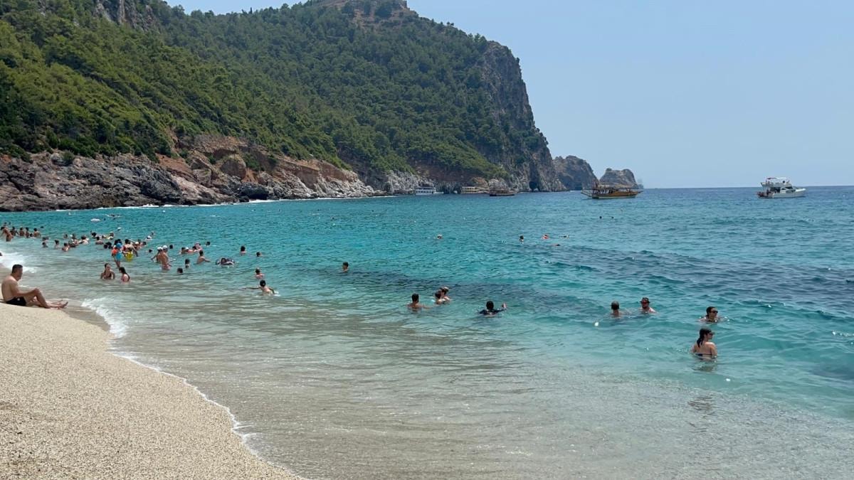 Kimileri güneşlenirken, kimileri Akdeniz’in berrak sularında yüzerek serinledi.