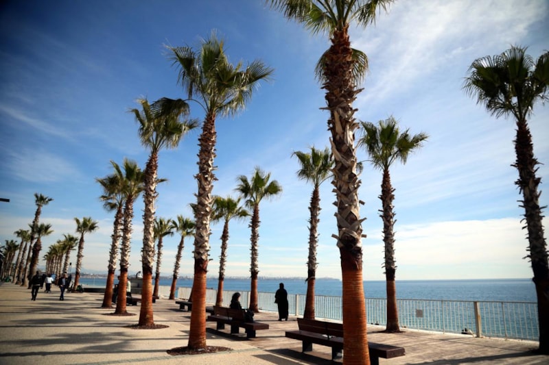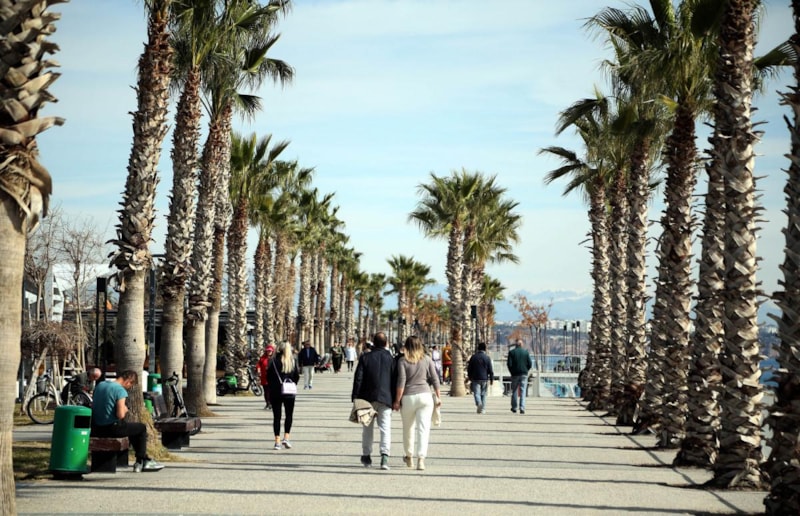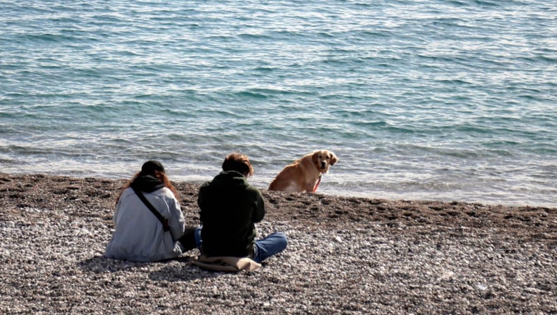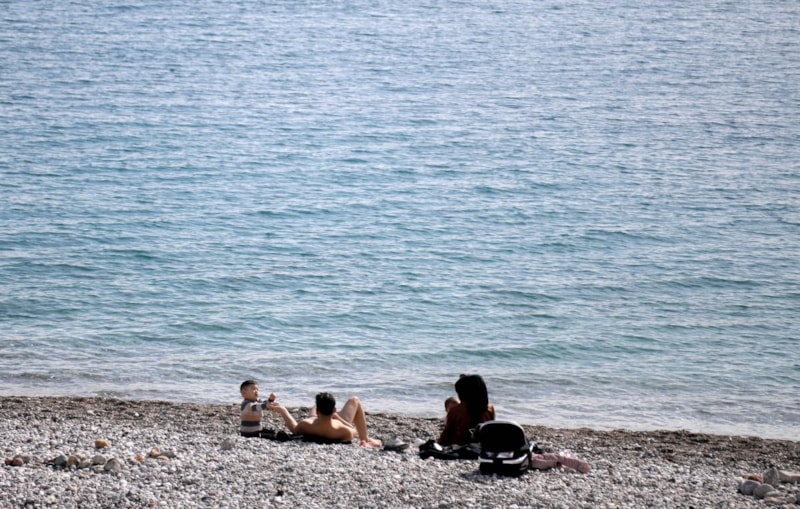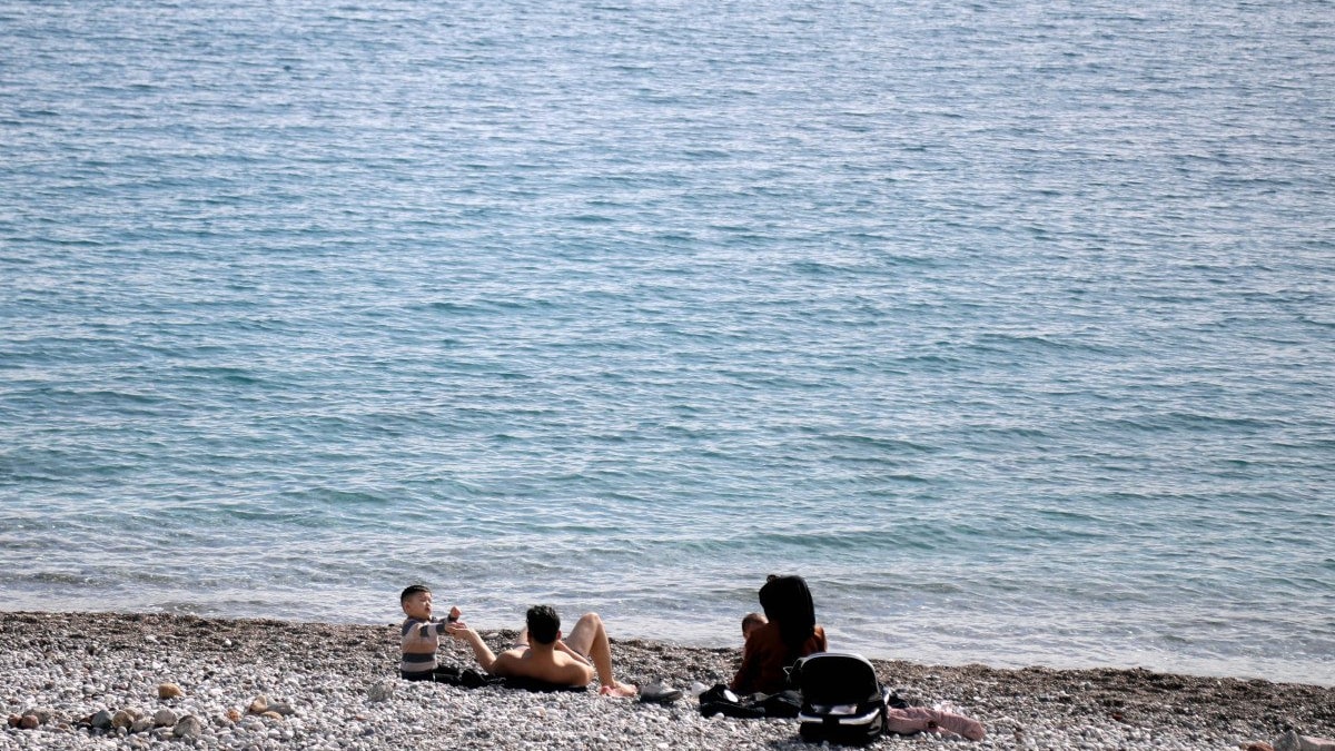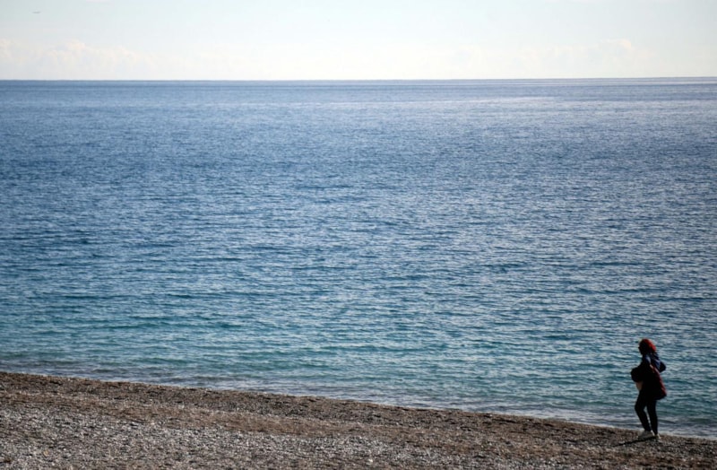 Konyaaltı sahilinde bazı kişiler denize girip güneşlendi, kimisi ise yürüyüş yaptı.