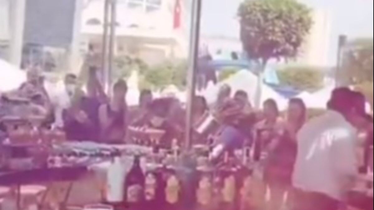 Görüntülerde otel çalışanlarının maske takarak servis yaptıkları görülürken, eğlenceye katılanların sosyal mesafe ve maske kurallarını hiçe saydığı görülüyor.