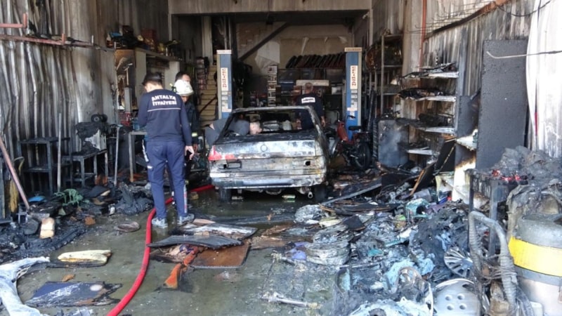 Çıkan yangında iş yerinin içerisinde bulunan Tofaş marka otomobil, motosiklet, oto aksesuarları, iş makineleri ve tesisat tamamen yandı.