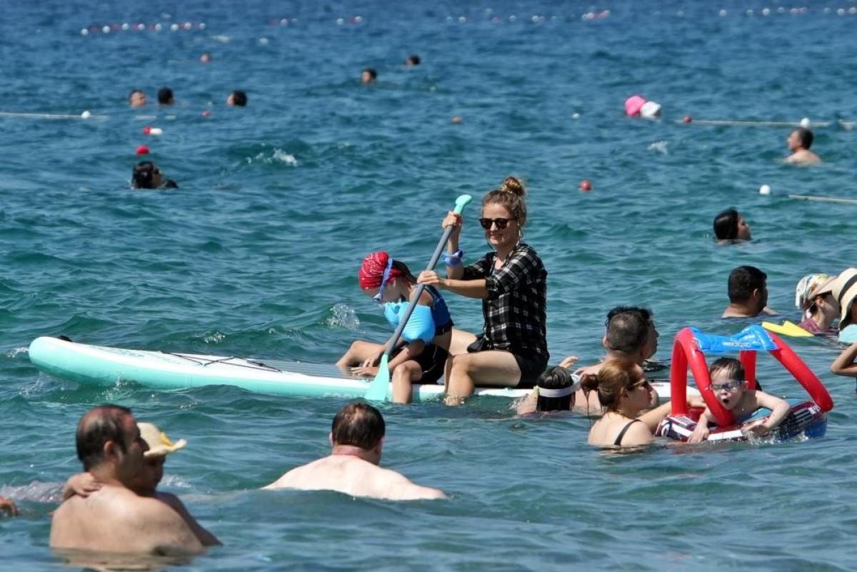 Hava sıcaklığının saat 11.00 itibariyle 28 derece ölçüldüğü, nem oranıysa yüzde 82 olarak gerçekleştiği kentte, yerli ve yabancı tatilciler sabahın erken saatlerinden itibaren sahillere akın etti.