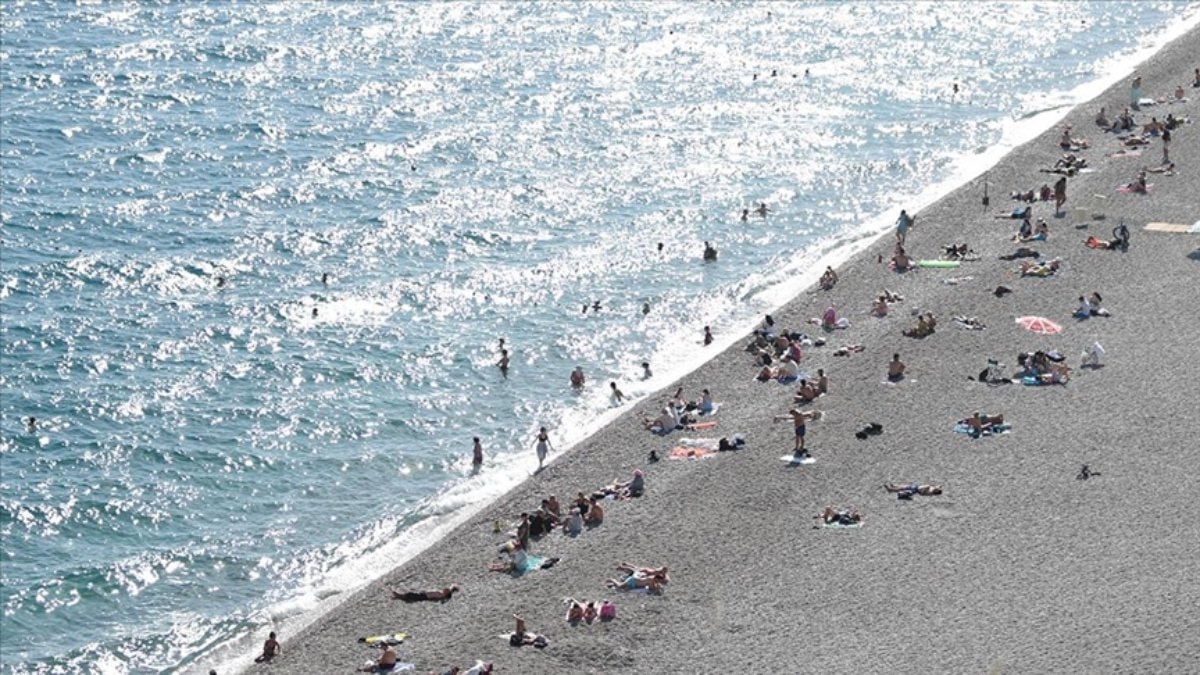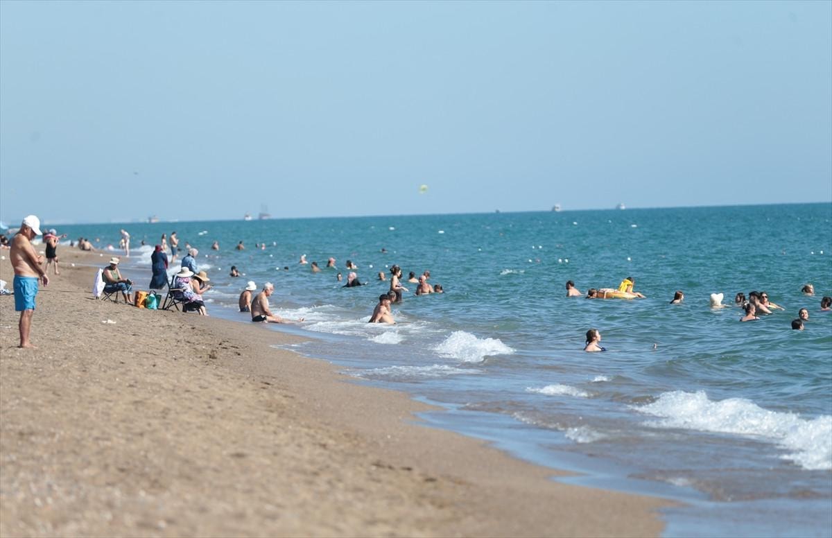 Sıcaktan bunalan kent sakinleri ile turistler, Konyaaltı ve Lara sahillerinde denize girip serinlemeye çalıştı.