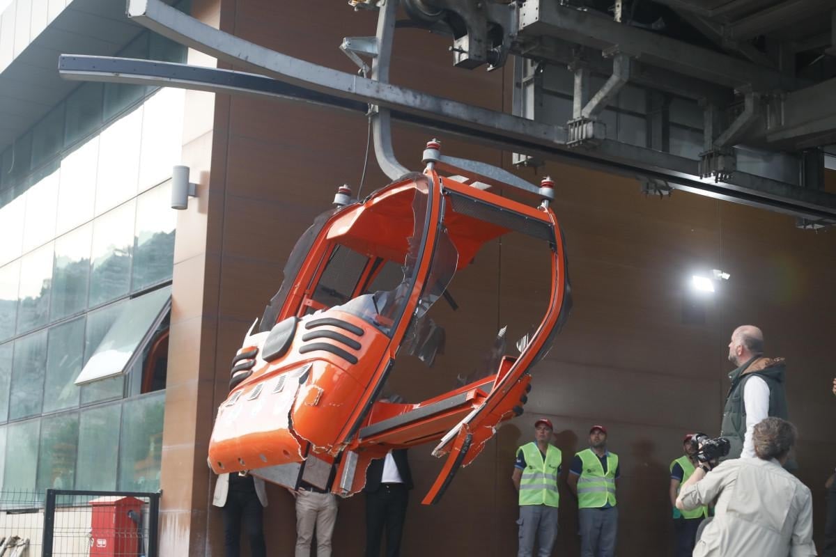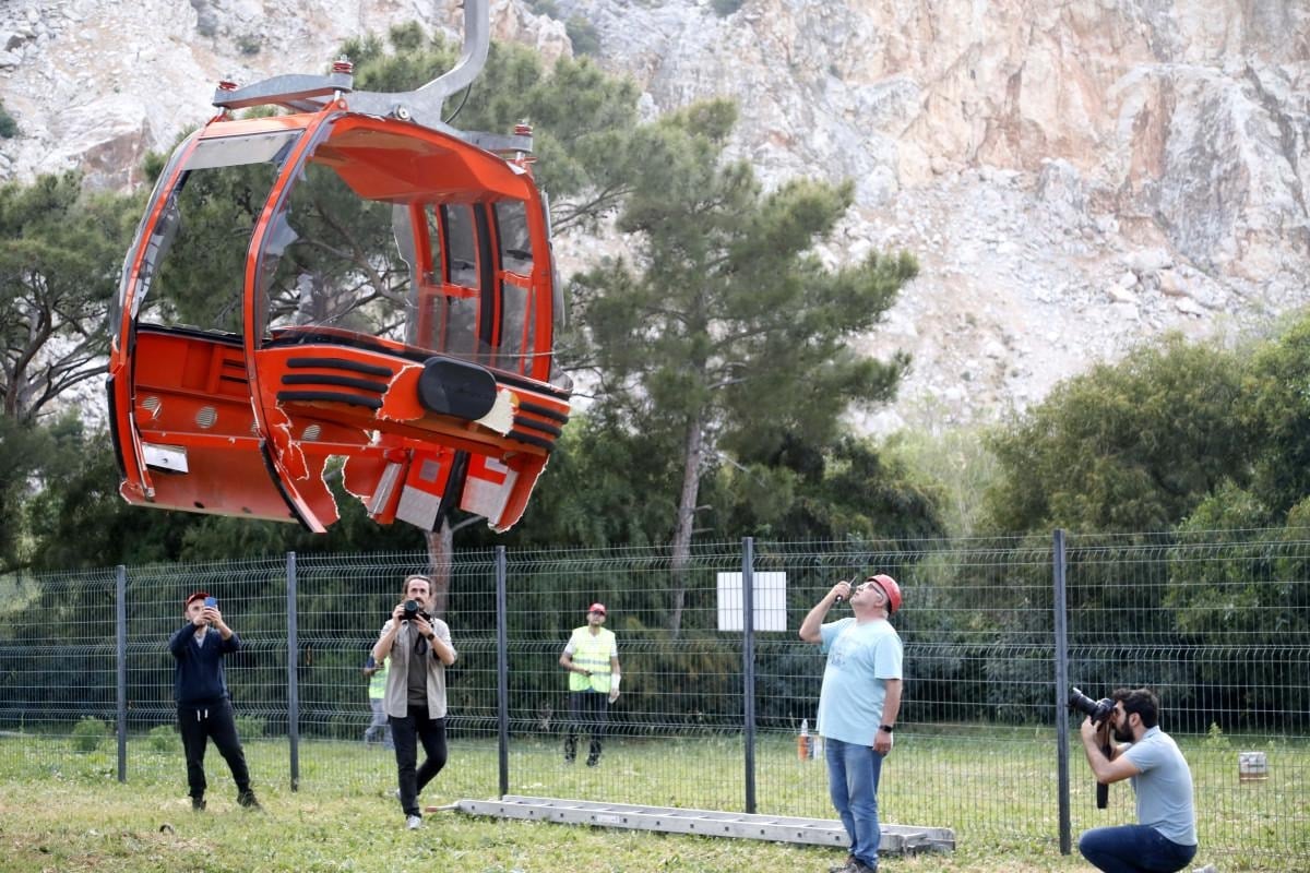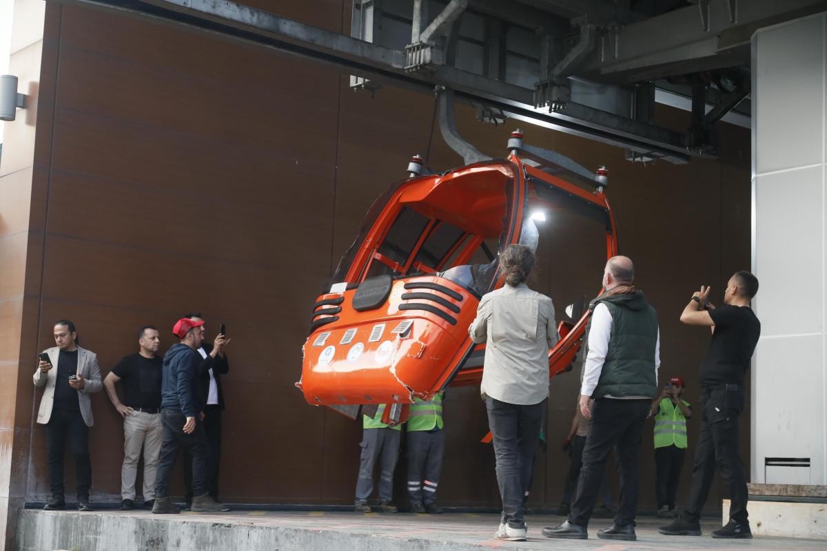 5 gün havada asılı kalan kabinler, savcılık incelemesinin ardından tek tek Sarısu Teleferik Sistemi'nin başlangıç noktasına getirilmeye başlandı.