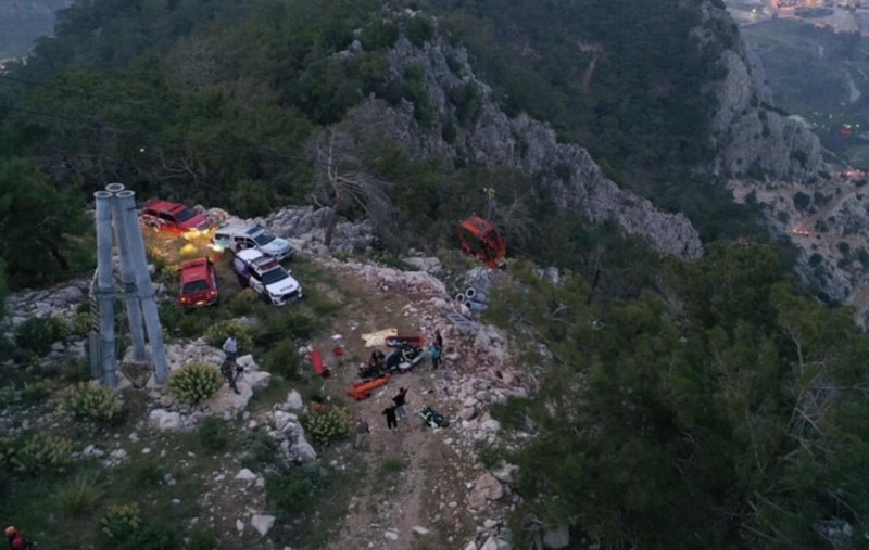 Bakanlıktan yapılan açıklamaya göre, Antalya Tünektepe Teleferik Tesisi'nde meydana gelen kazanın ardından 15 kişilik PSD ve ASYA ekibini sahaya yönlendirildi.