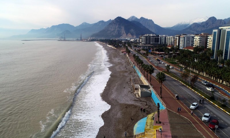 Kentte salı akşamından beri etkili olan yağmur ve fırtına, yerini güneşli havaya bıraktı. Konyaaltı Sahili'nde deniz turkuaz renge döndü.
