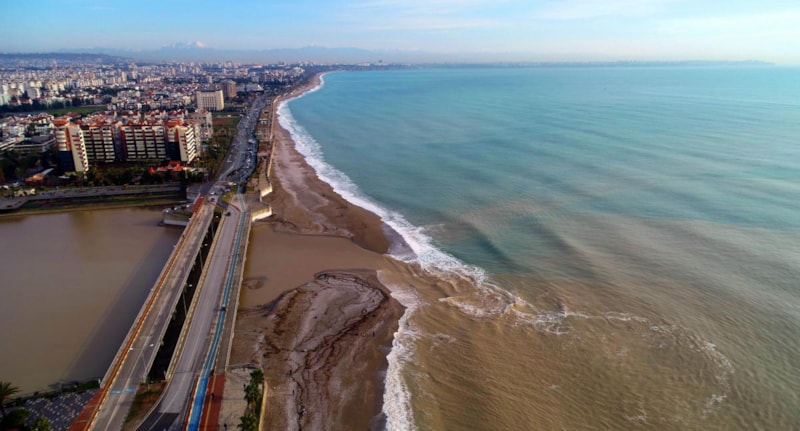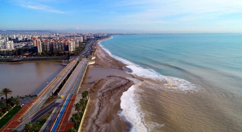 Boğaçay olarak bilinen Toros Dağları'ndan doğan akarsuyun denize döküldüğü alan ise kahverengiye döndü.