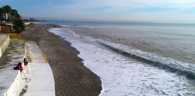 Konyaaltı Varyantı'nın aşağısında bulunan sahilde dalgaların oluşturduğu beyaz köpüğün cazibesine kapılan iki genç denize girdi.