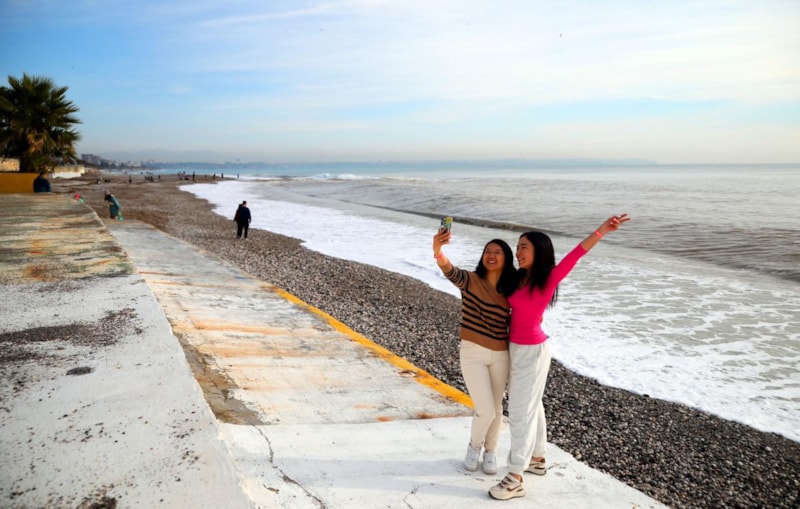 Antalya'da yaşayan yerleşik yabancılardan Özbekistanlı Ruksora Lazarova arkadaşıyla birlikte sahile gelip fotoğraf çektirdi.