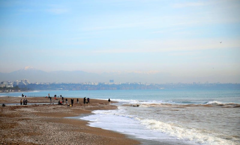 Pırıl pırıl güneşli havaya uyanan Antalyalılar, soluğu sahilde aldı.
