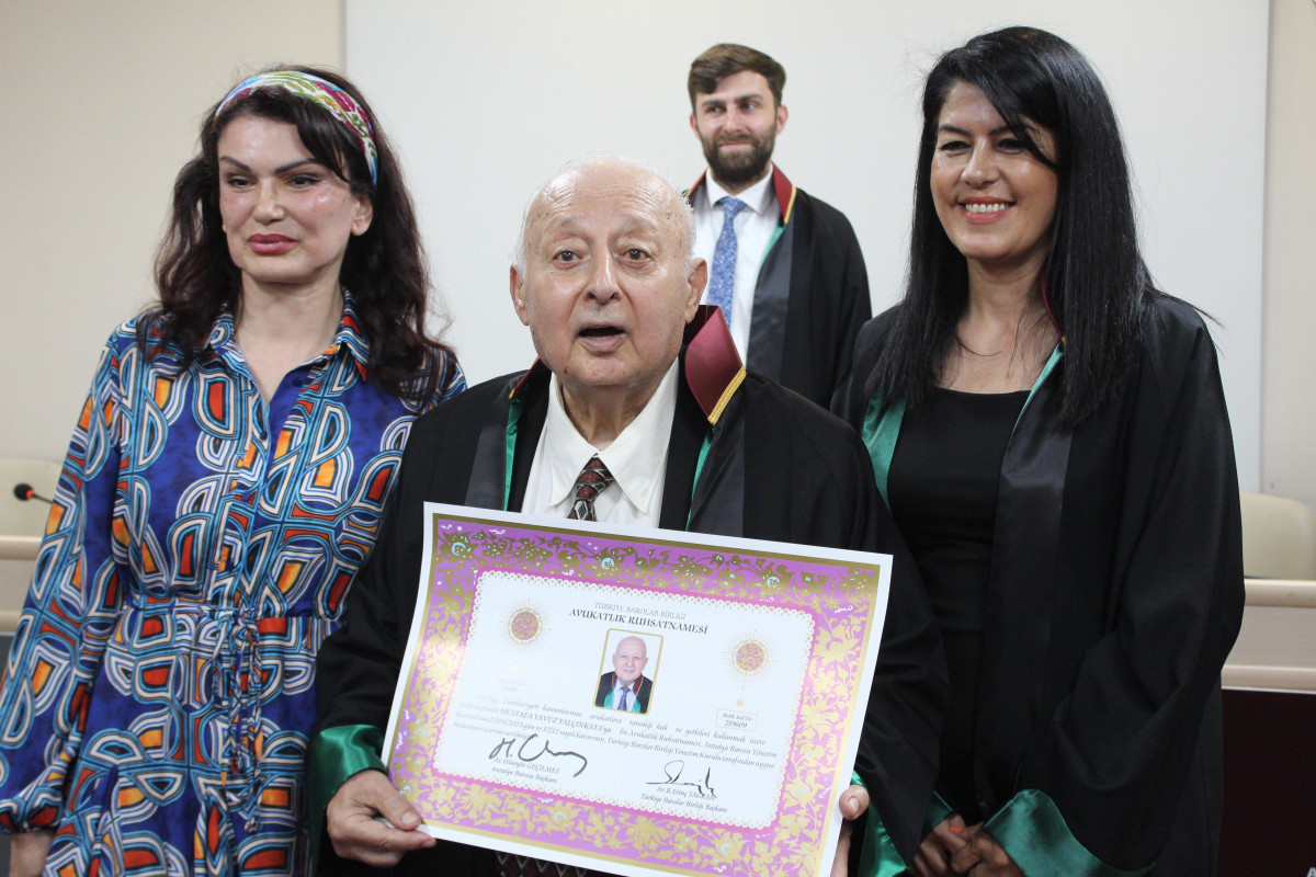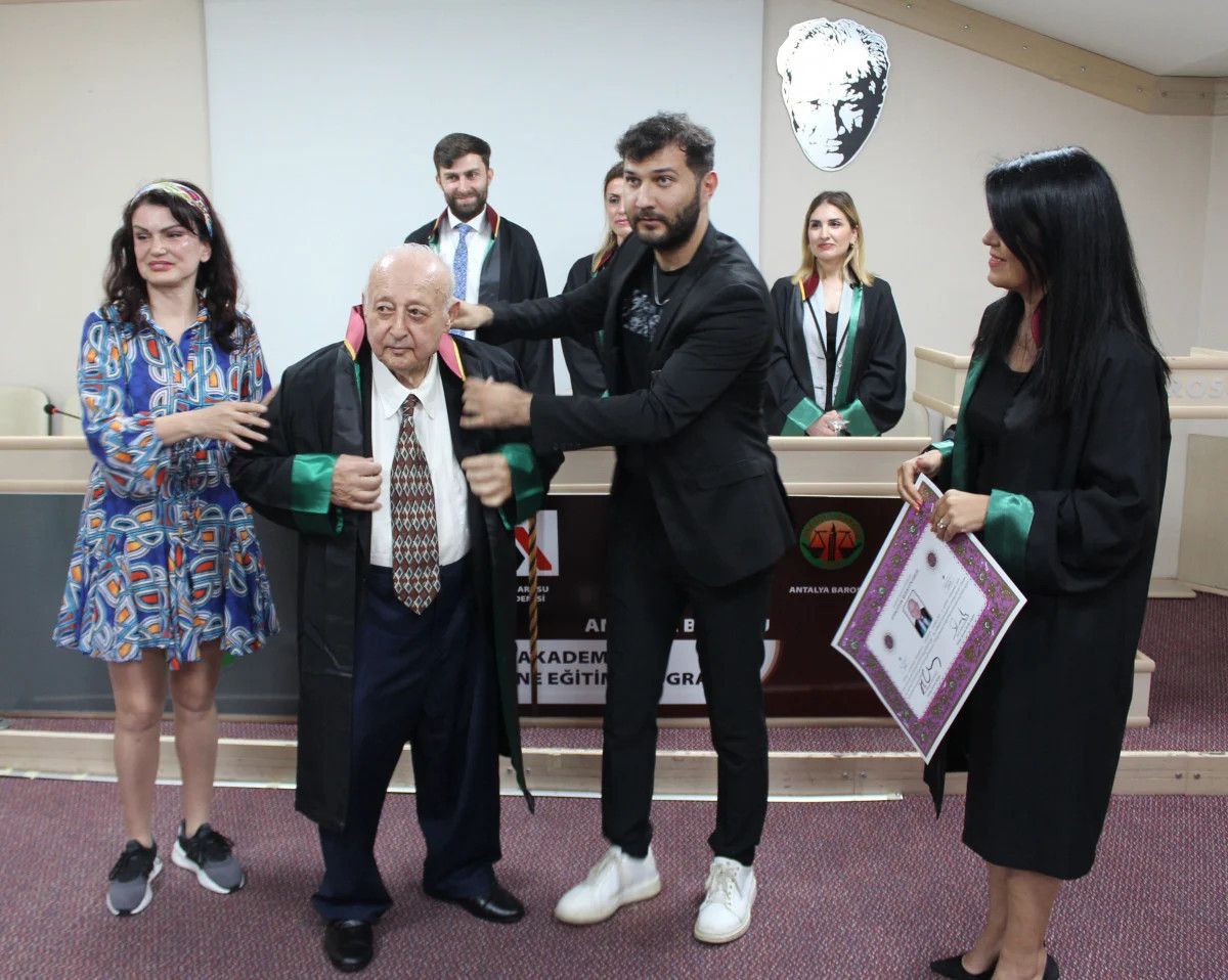Türkiye'nin en yaşlı hukuk fakültesi mezunu olarak geçen yıl Ankara Üniversitesi Hukuk Fakültesi'ni bitiren 84 yaşındaki evli, 1 çocuk babası Mustafa Yavuz Yalçınkaya, Antalya'da 1 yıllık stajyerlik dönemini tamamladıktan sonra avukatlık ruhsatını almaya hak kazandı.