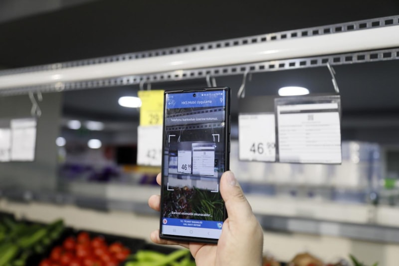 Anlık olarak ürünlerin hem toptancı halinden çıkış fiyatlarını hem nerede üretildiklerini takip eden ekipler, HKS isimli Ticaret Bakanlığı'nın uygulaması üzerinden karekodu taratıp, ürünlerin fiyat ve üretim bilgisini aldı, reyondaki fiyatlarla kıyaslamalar yapıldı.