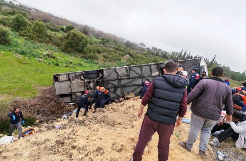 Dün akşam Tekirdağ'dan Antalya'ya doğru yola çıkan, içerisinde 34 yolcu ve mürettebatın bulunduğu İzzet Karaağaç idaresindeki yolcu otobüsü, çok katlı kavşağa geldiği sırada yoğun sis ve kayganlaşan yol sebebiyle sürücüsünün direksiyon hakimiyetini kaybetmesi sonucu önce yol kenarında bulunan beton bariyerlere çarptı.