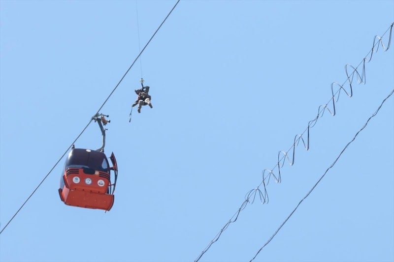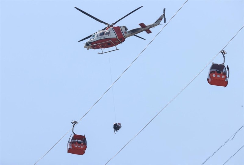 Kazanın ardından durdurulan teleferik hattı üzerindeki kabinlerde mahsur kalanların kurtarılması için çalışma başlatıldı.