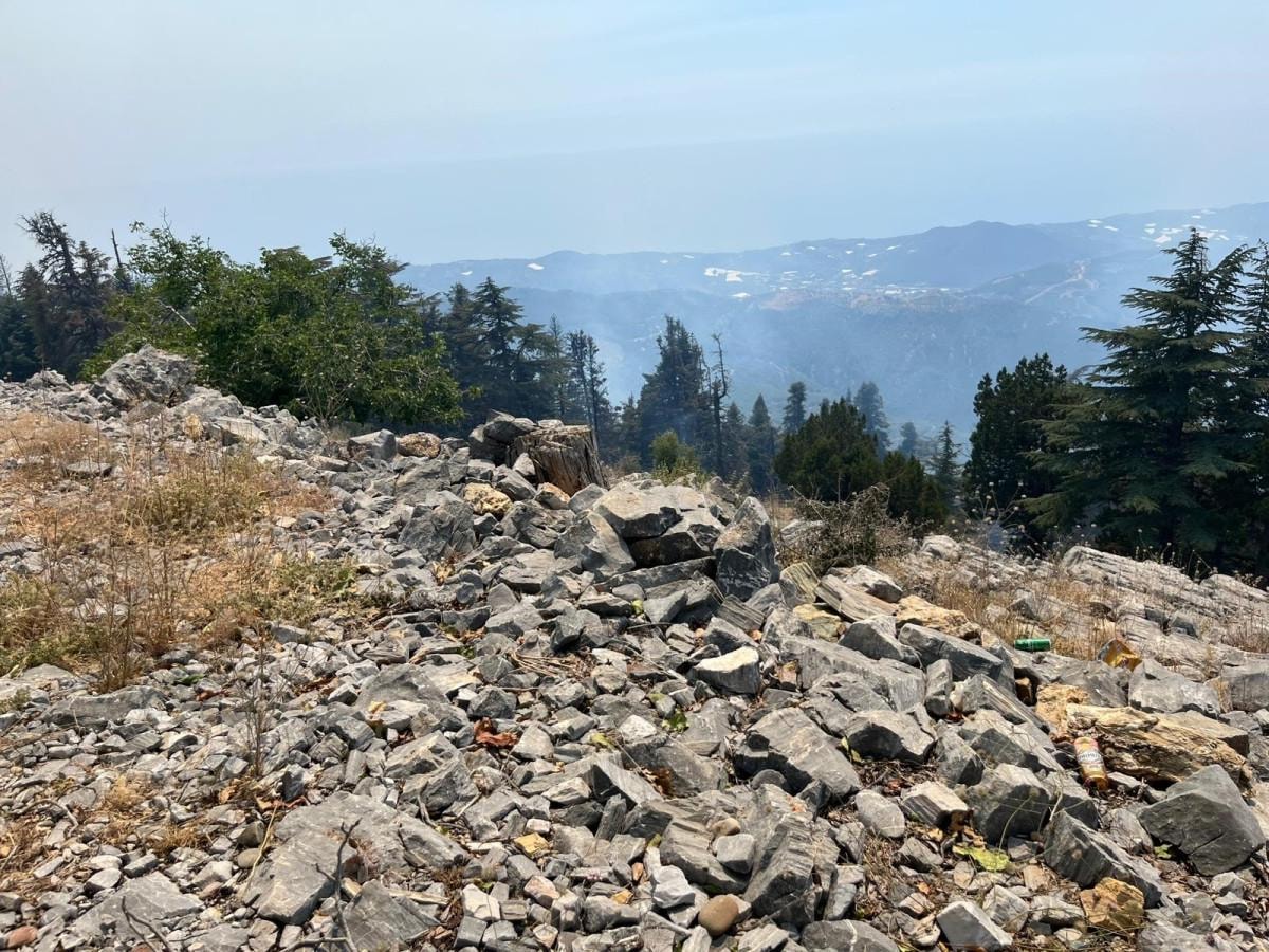 Şiddetli rüzgar ve zorlu doğa şartları nedeniyle ekiplerin yangına müdahalesi güçleşti.
