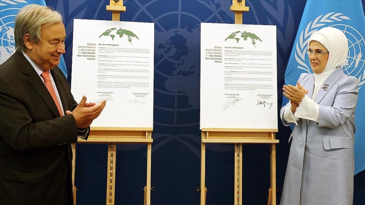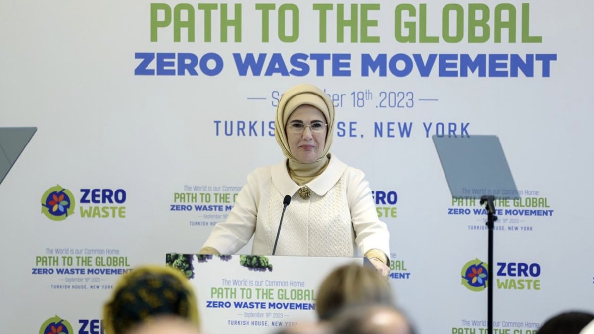 "Sıfır Atık hareketi yalnızca bir proje değil, atıksız bir geleceğin anahtarıdır" diyen Emine Erdoğan, "Çocuklarımıza çöp yığınları miras bırakmamak için başta Birleşmiş Milletler Sıfır Atık Danışma Kurulumuz olmak üzere mücadelemizi sürdürüyoruz." dedi.