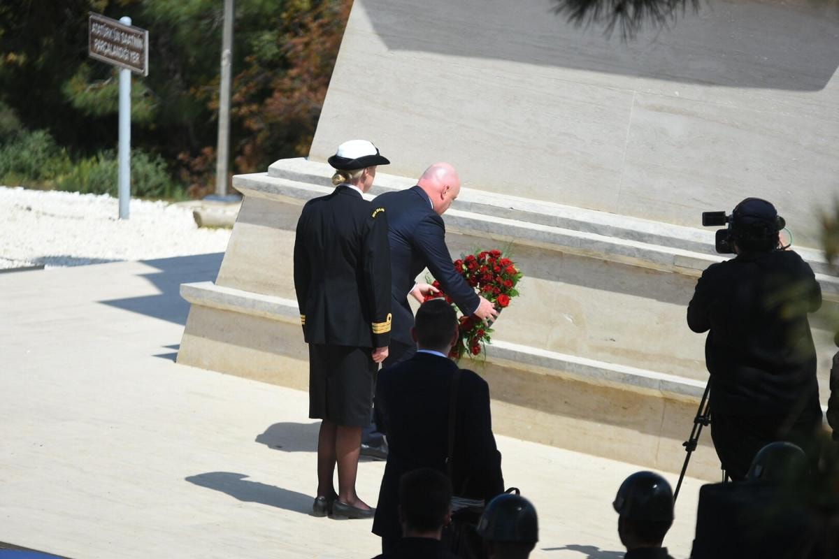 Duanın ardından çelenk törenine geçildi. Türkiye Cumhuriyeti adına ilk çelengi Çanakkale Valisi Ömer Toraman koydu.