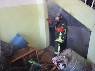Apartman sakinlerinin ihbarı üzerine olay yerine itfaiye ekipleri sevk edildi. Bir saatlik çalışmanın ardından söndürülen yangında zehirlenme olayına karşı ambulans hazır bekletildi.