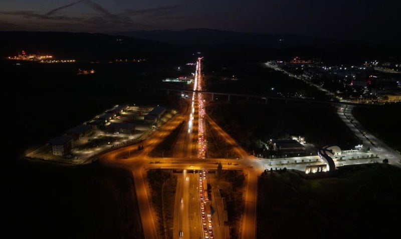 Ulaşımda 43 ilin geçiş noktası olarak bilinen "kilit kavşak" Kırıkkale’de, ara tatilin sona ermesiyle birlikte karayollarında yaşanan trafik yoğunluğu havadan görüntülendi.