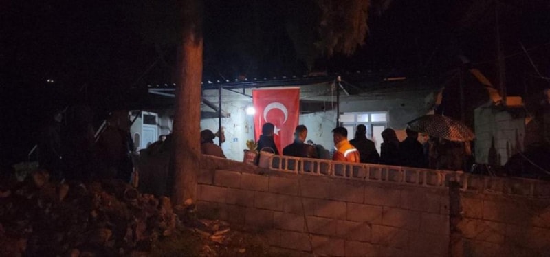 Türk bayrakları asılan şehidin baba evine yakınları ve komşuları taziye için akın etti.