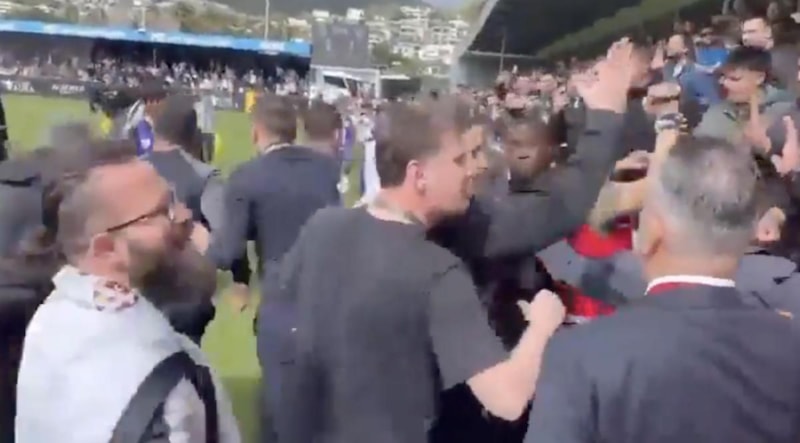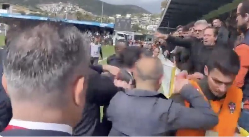 Yaşanan olayların ardından Bodrum FK Başkanı Fikret Öztürk ile Eyüpspor Başkanı Murat Özkaya sahanın içine girerek tribünlere gitti.