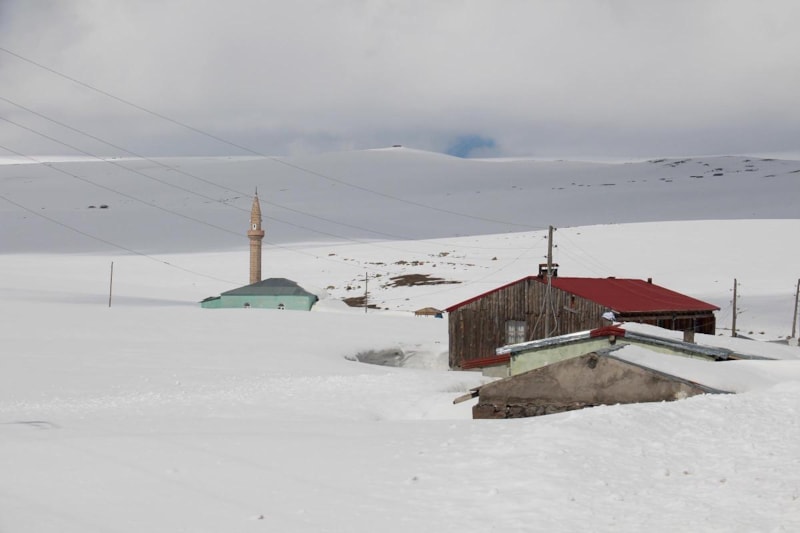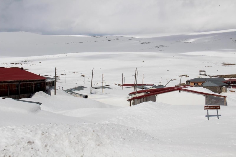 Ardahan ile Artvin'in Ardanuç ilçesi sınırında yer alan ve yazın yaylacıların kullandığı yaklaşık 300 haneli, 2 bin 581 rakımlı Bülbülan Yaylası'ndaki evlerin kara gömüldüğü görüldü.