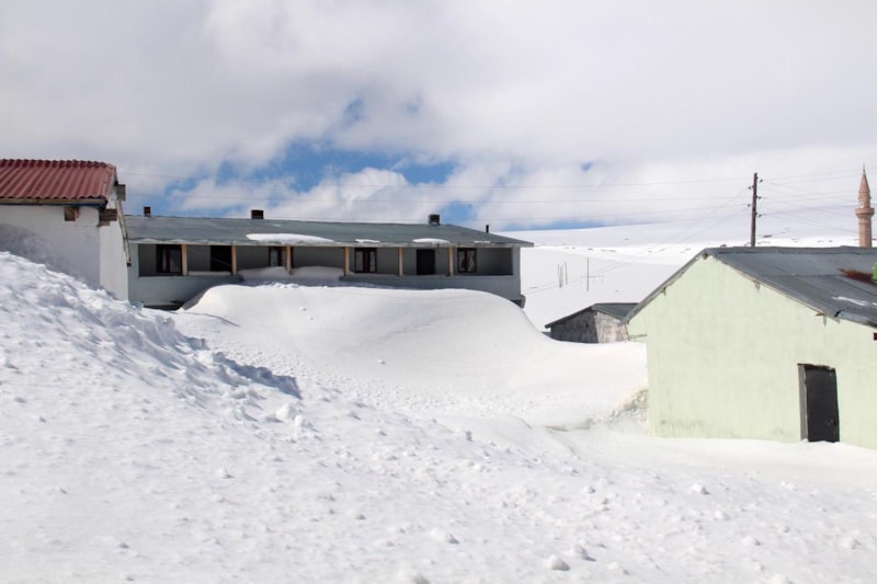 Yaylada kar kalınlığının tek katlı evlerin çatılarına kadar ulaştığı görüldü.