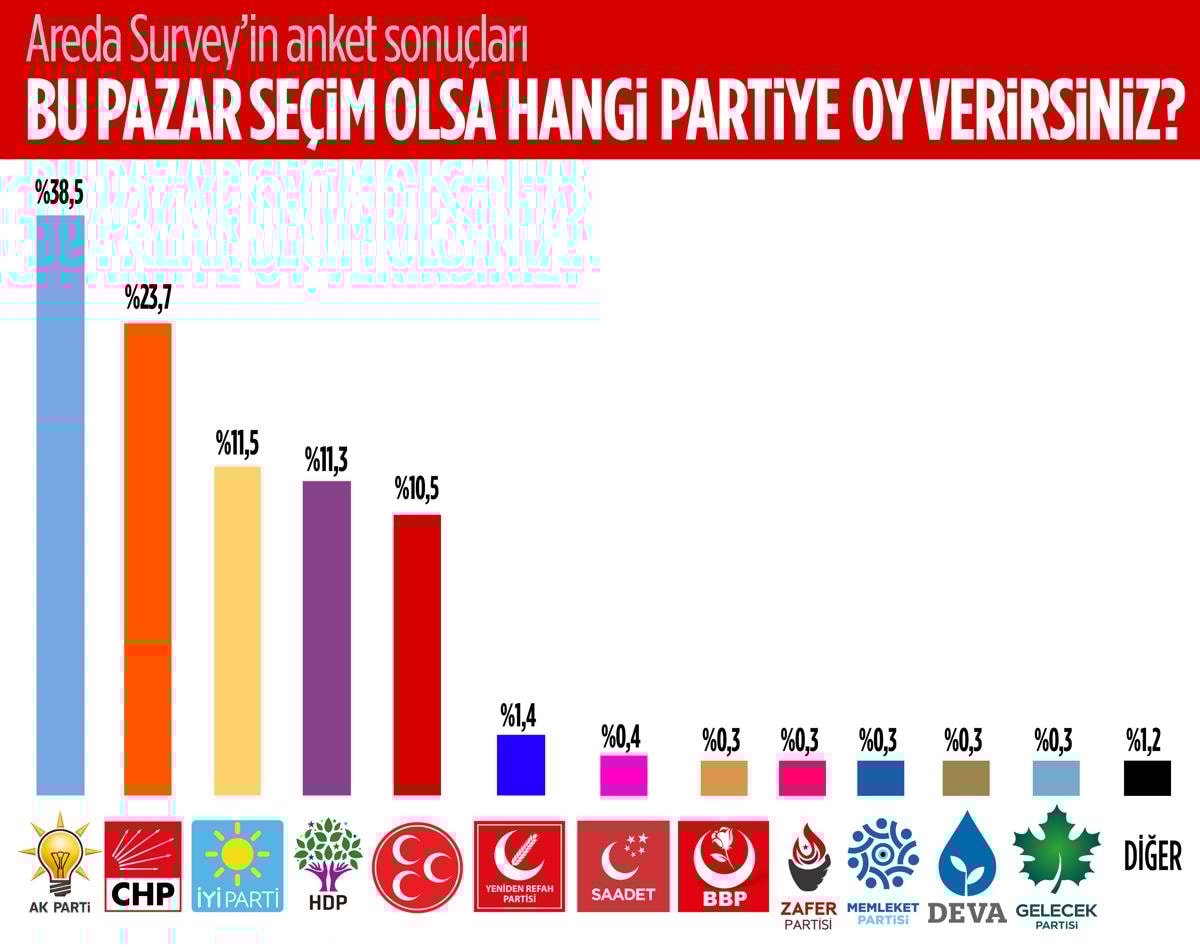 Ensonhaber, Areda Survey'in yaptığı son anketin sonuçlarını yayınlıyor.
