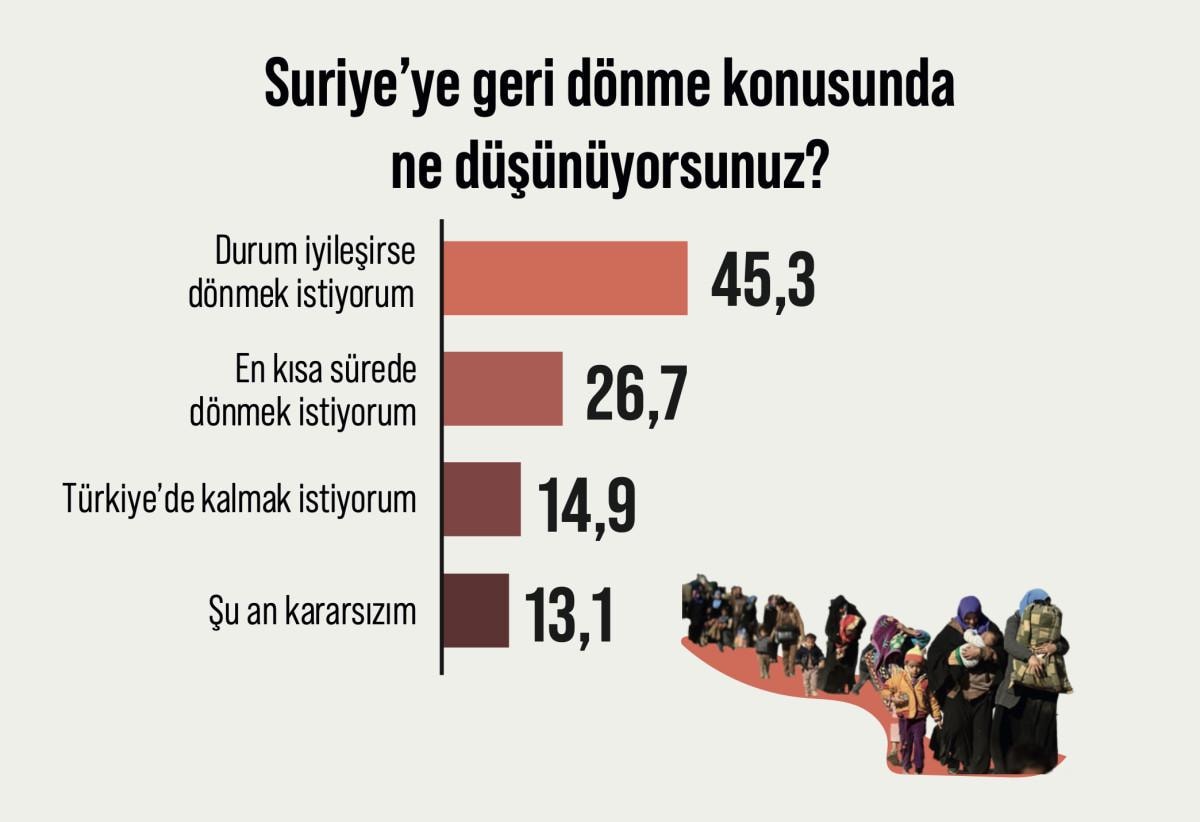 Bu kapsamda Areda Survey araştırma şirketi, Suriye'deki yaşanan gelişmeleri Türkiye'de yaşayan Suriyelilere sorarak önemli bir veri elde etti.