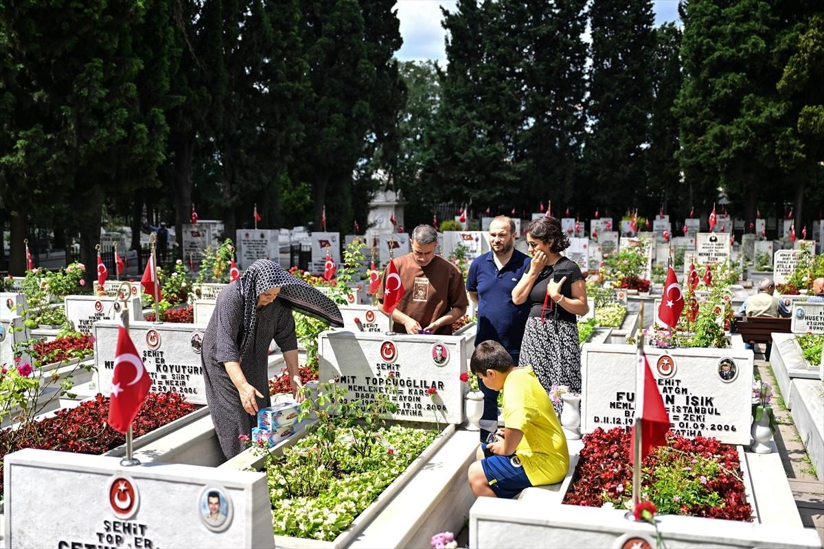 İstanbul'da şehit aileleri, Kurban Bayramı arifesinde Edirnekapı Şehitliği'ne gelerek, kabirleri ziyaret etti.