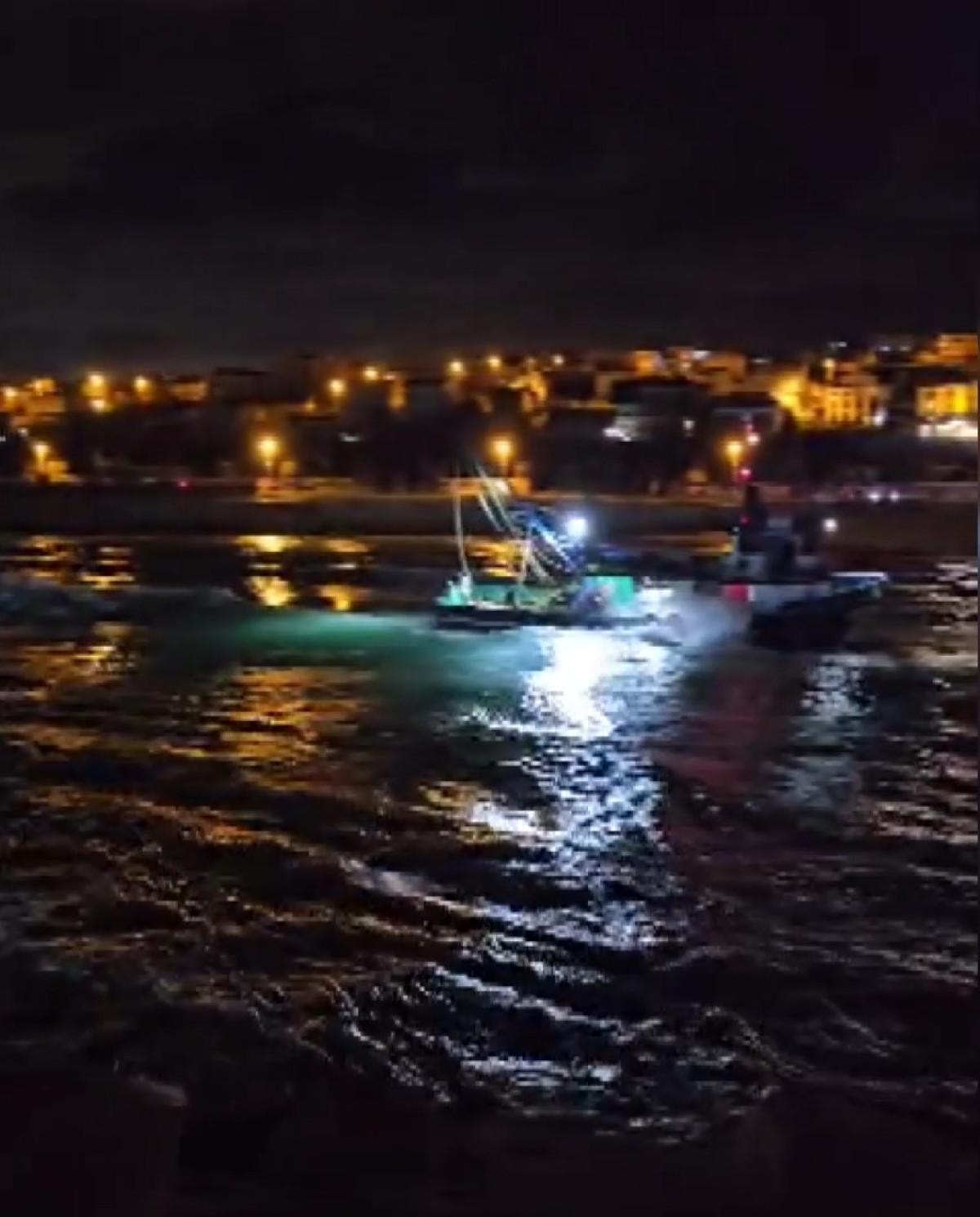 Tekne kıyıya yaklaştığı sırada dalga ve rüzgarın da etkisiyle kıyıya yanaşmakta güçlük çekti. Bir süre dalgalarla mücadele eden tekne daha sonra limana doğru hareket etti.