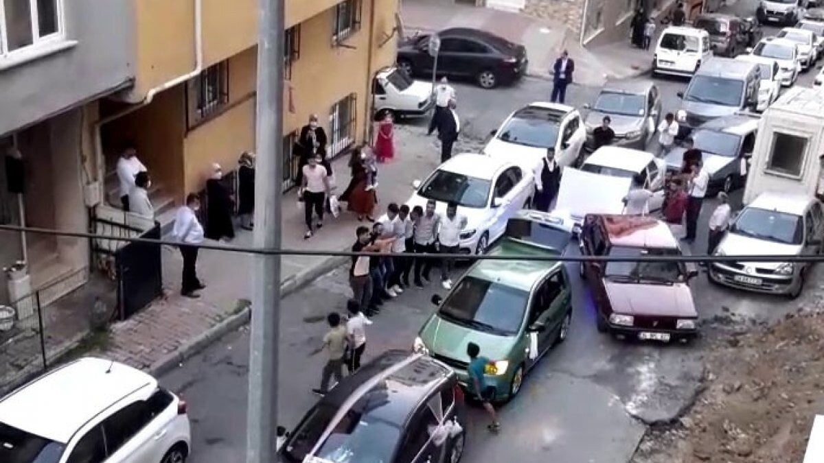 İstanbul’un Arnavutköy ilçesi Merkez Mahallesi'nde düğün konvoyu için toplanan bir grup, konvoy sırasında yolu trafiğe kapatarak halay çekmeye başladı.