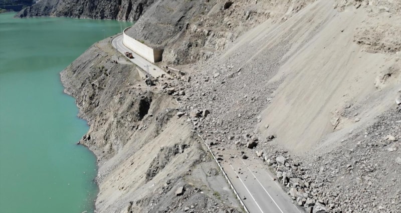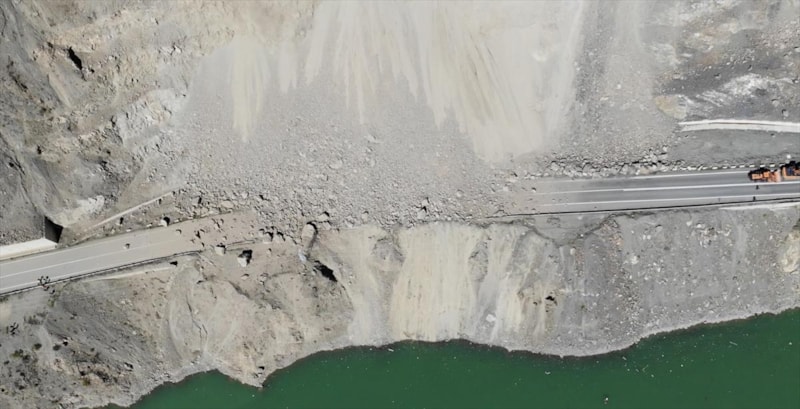 İhbar üzerine ekipler bölgeye sevk edildi. Heyelan nedeniyle kara yolu ulaşıma kapandı.