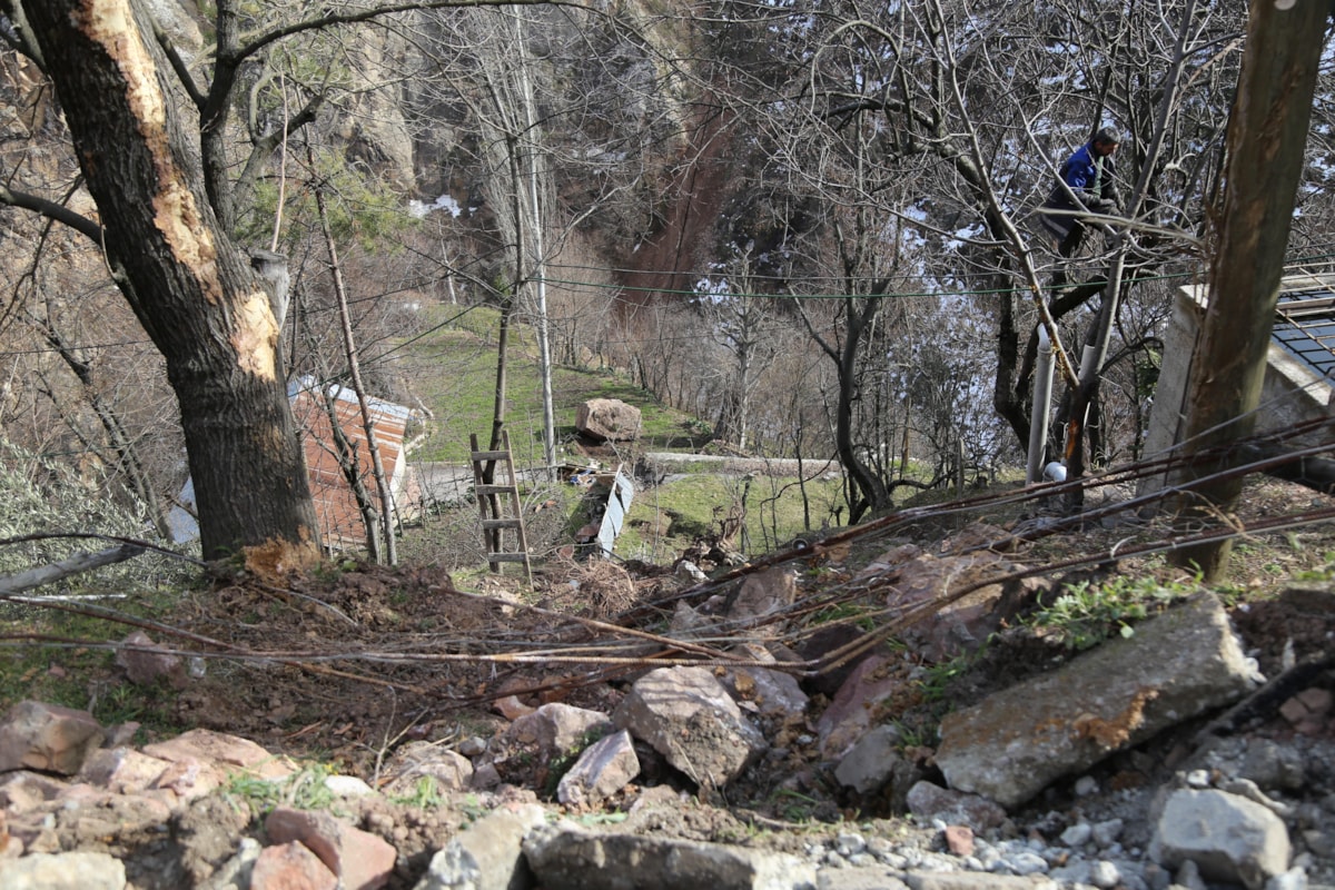 Önüne ne kattıysa yıkıp gecen kaya kütlesi, mahallede korku ve paniğe neden oldu. Büyük bir gürültüyle evlerinden çıkan vatandaşlar, yeni bir heyelan olma ihtimaline karşı tedirgin.