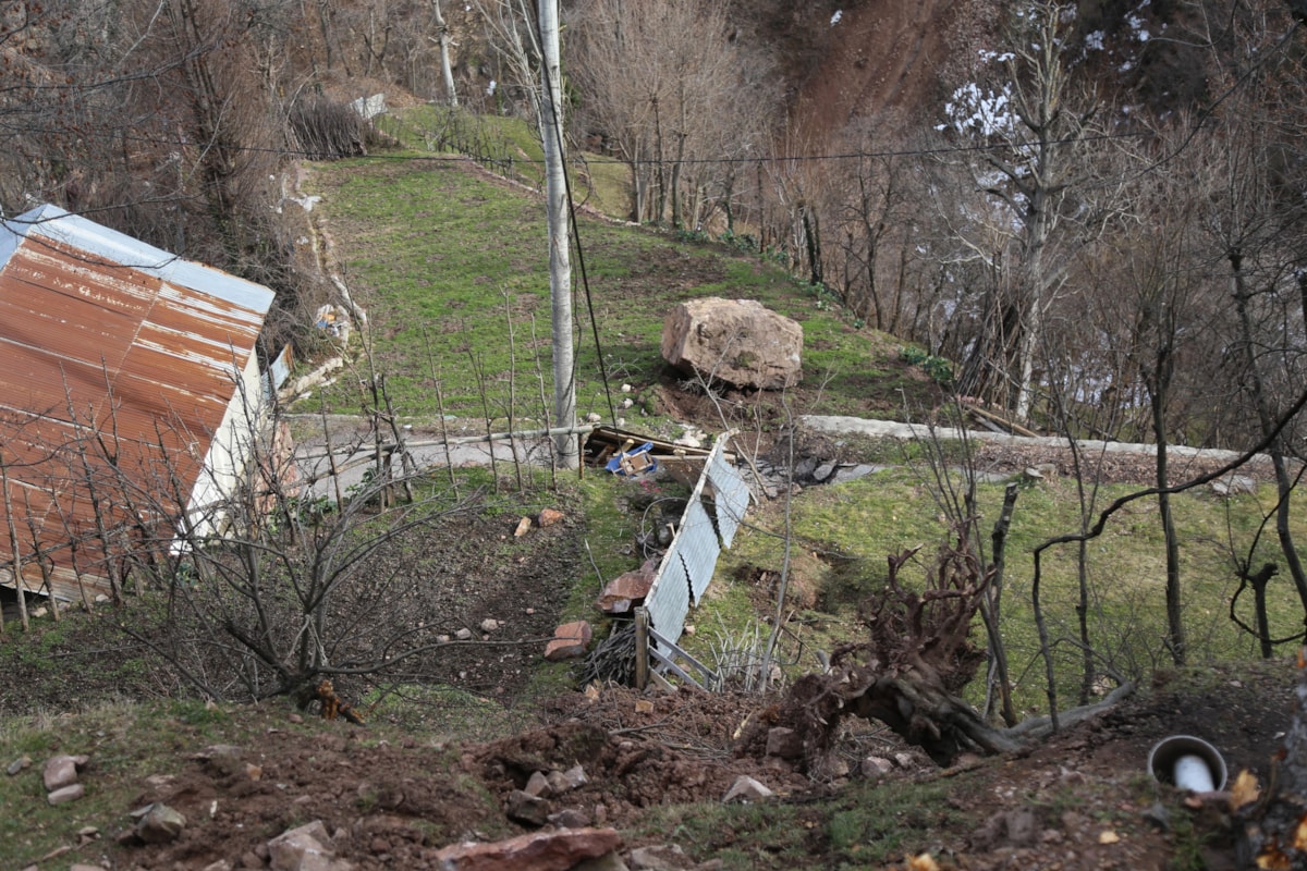Gece saatlerinde oldu ben işteydim. Bu dev kaya bizim evle diğer evlerin arasından geçerek babamın tarlasına düştü. Allaha şükür kimsede bir şey yok. Sadece arazimize zarar verip, küçük bir değirmenimiz yıktı.