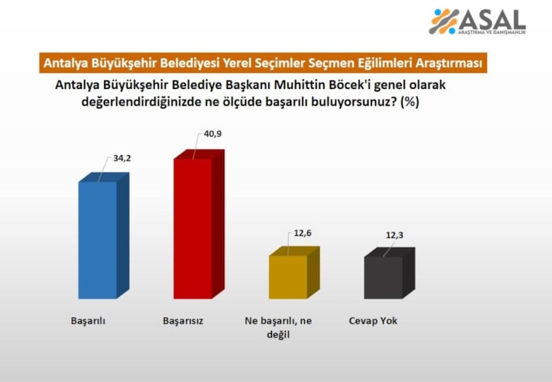 Ankette seçmenlere, "Antalya Büyükşehir Belediye Başkanı Muhittin Böcek'i başarılı buluyor musunuz?" sorusu yöneltildi.