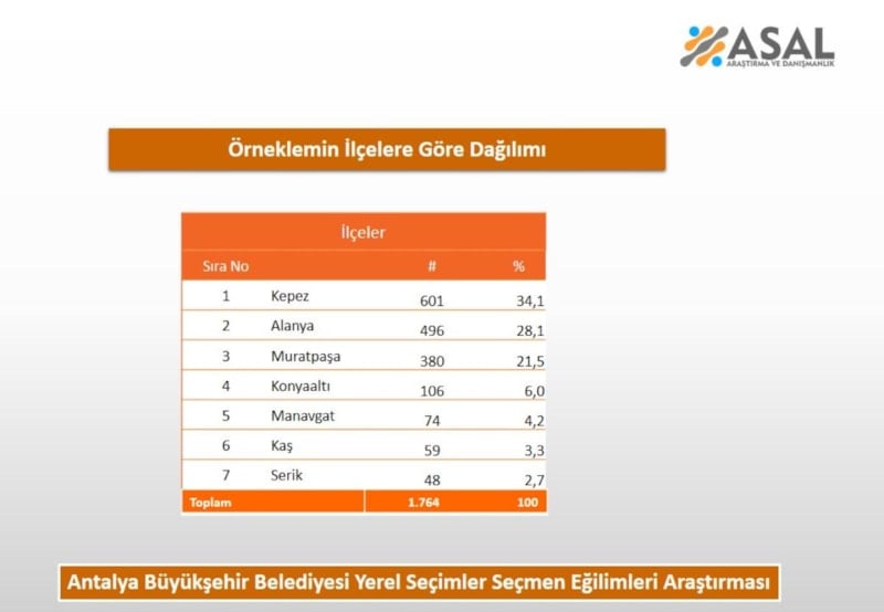 ASAL Araştırma Şirketi, "Antalya Büyükşehir Belediyesi Yerel Seçimler Seçmen Eğilimleri Araştırması"nı yayınladı.