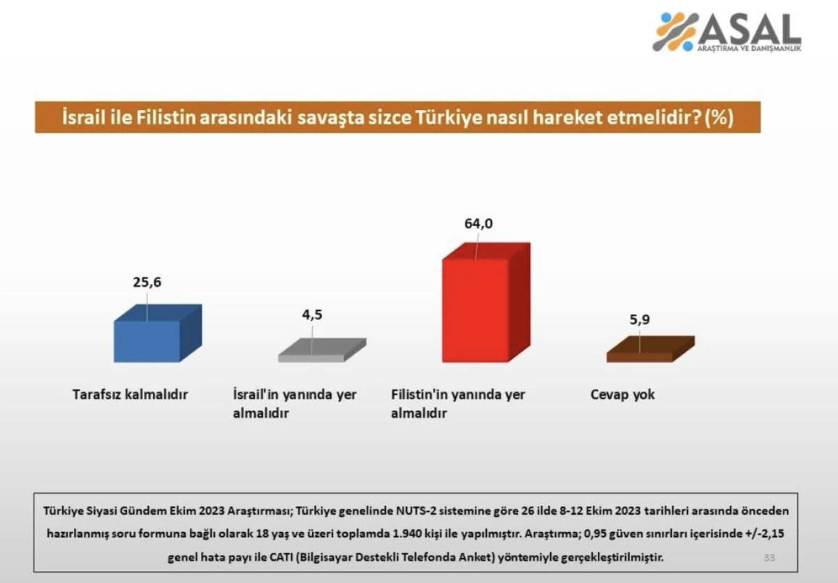 Araştırmada, vatandaşlara 7 Ekim'de İsrail'in Filistin'e yönelik saldırıları başladığında Türkiye'nin alacağı tutum soruldu.