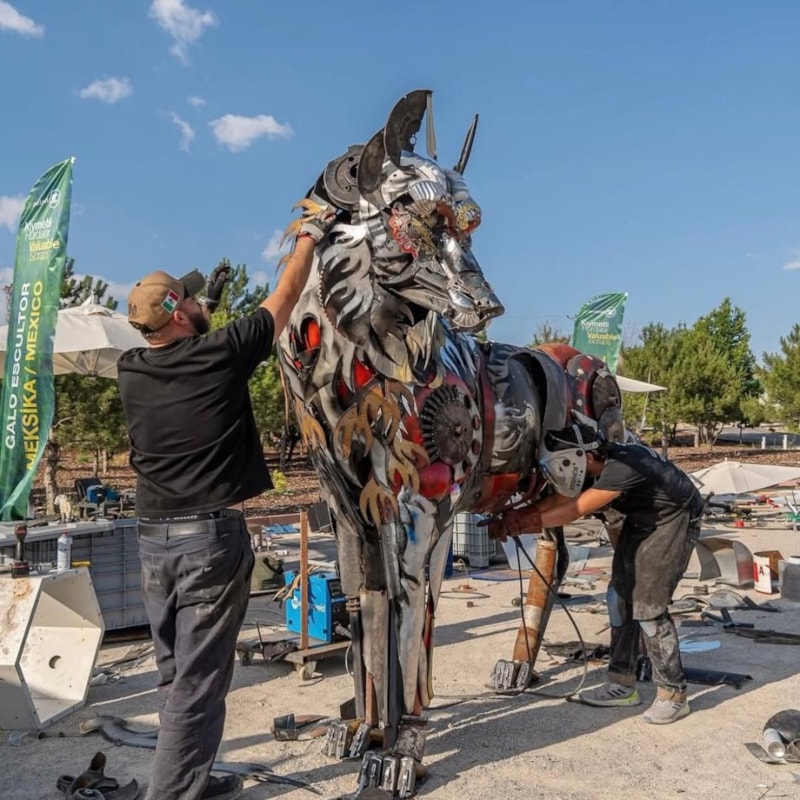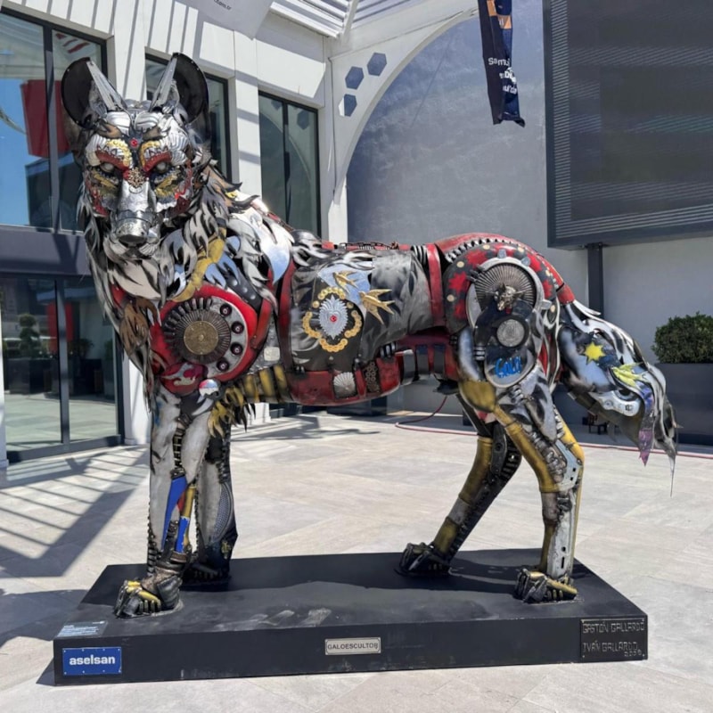 Savunma Sanayi üretiminden arta kalan parçaları sanata dönüştüren ASELSAN, yaptığı "Bozkurt" heykelini sergiliyor.