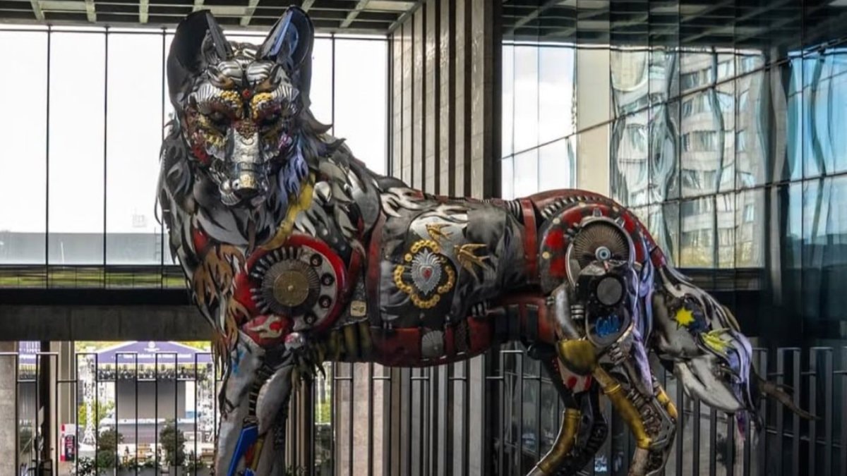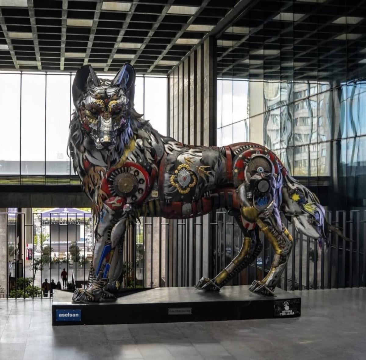 ASELSAN'ın silah üretiminden arta kalan malzemelerle yaptırdığı Bozkurt heykeli, Atatürk Kültür Merkezi'nde sergilenmeye başlandı.