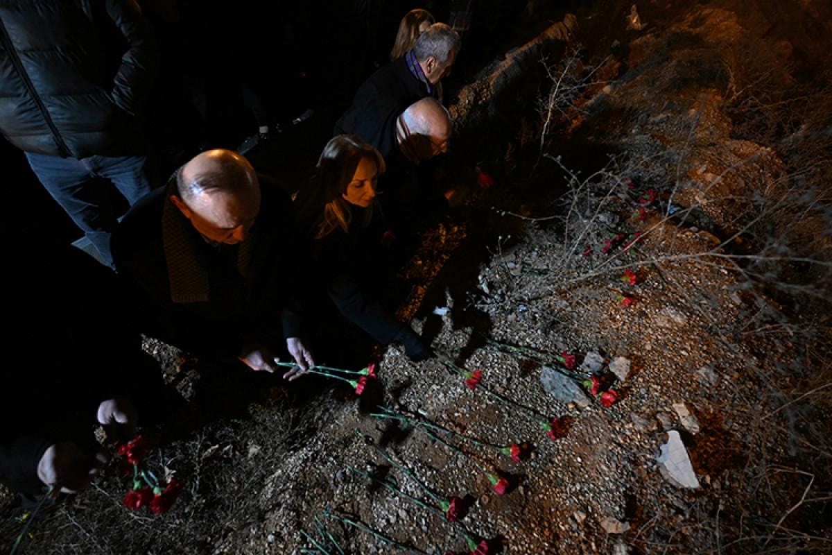 Asrın felaketi'nde 17 kişinin hayatını kaybettiği Hayat Sitesi alanında buluşan bir grup, meşale yakarak alana karanfil bıraktı, saygı duruşunda bulundu.