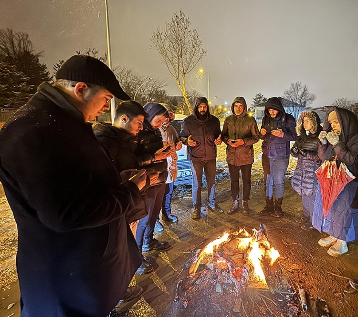 12 bloku yıkılan Ebrar Sitesi'nin yerine inşa edilen konutların önüne gelen aileler de burada ateş başında nöbet tuttu.