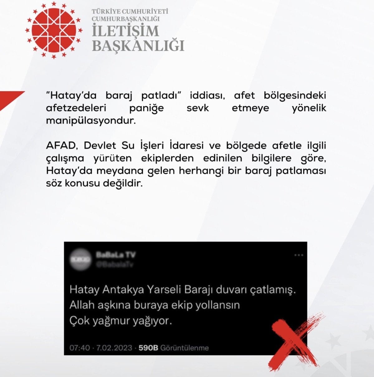 - Deprem sonrası yalanlar yayılırken, T.C. İletişim Başkanlığı ve diğer kurumlar bu dezenformasyona karşı yoğun çaba gösterdi.