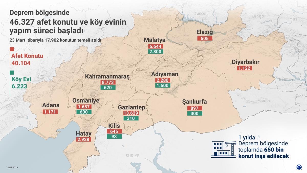 Böylelikle afet bölgelerinde toplamda 46 bin 327 afet konutu ve köy evinin yapım süreci başladı.
