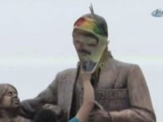 ATATÜRK BÜSTÜNE PKK AFİŞİ VE ÖCALAN POSTERİ