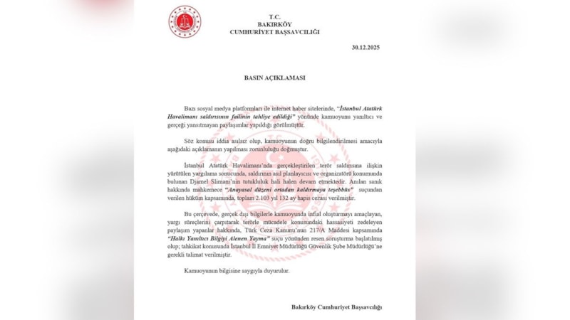 Bakırköy Cumhuriyet Başsavcılığı, kamuoyunu yanıltan ve yargı süreçlerini çarpıtan paylaşımlara karşı hukuki sürecin kararlılıkla sürdürüleceğini vurguladı.