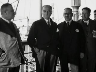 Atatürk'ün genç cumhuriyetin geleceğine ilişkin önemli mesajlar verdiği Trabzon seyahatlerinin ikincisinde çekilen 1930 Kasım ayına ait görüntüde; Ulu Önder, Ege Vapuru'nda çocukluk arkadaşı ve ona en yakın isimlerden Salih Bozok, yanından hiç ayırmadığı Kılıç Ali ve başyaveri Cevat Abbas Gürer ile sohbet ederken görülüyor.