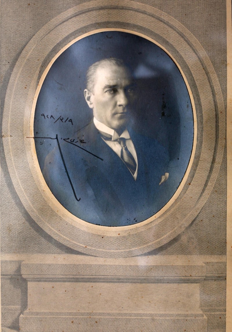 Mustafa Kemal Atatürk'ün, müzelerde sergilenen ve birçok kişiye imzaladığı fotoğraflarının sütudyoda çekimi esnasında bir de video kaydedildiği ortaya çıkarken o anlara ilişkin görüntüler 1950'lerde yapılmış bir Atatürk belgeselinde bulundu.