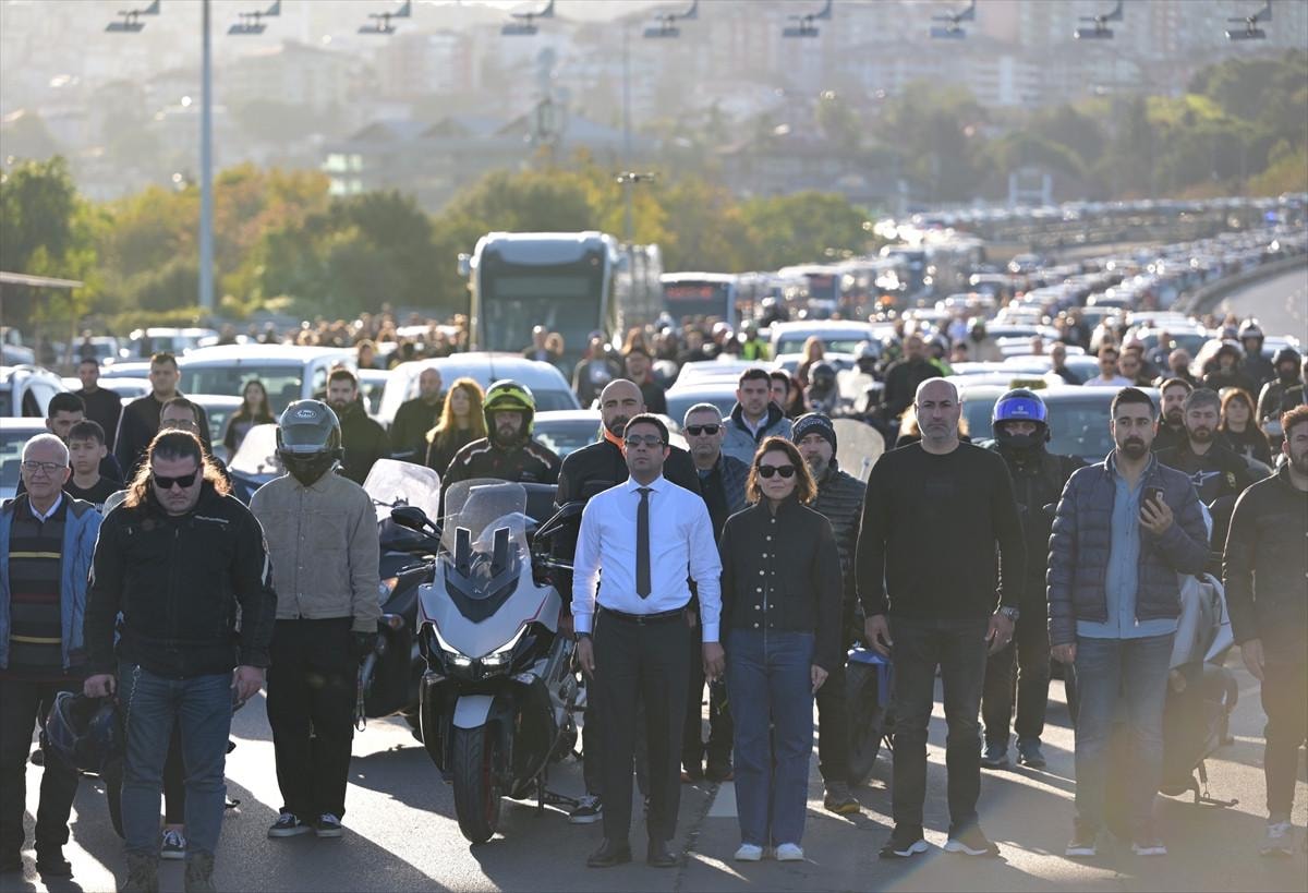 Sürücüler araçlarından inerek saygı duruşuna katıldı. Bazı sürücüler de araçlarının kornalarına basarak sirenlere eşlik etti.