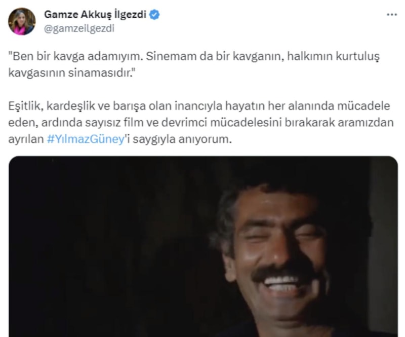"Devrimci mücadelesini bırakarak aramızdan ayrılan Yılmaz Güney'i saygıyla anıyorum"