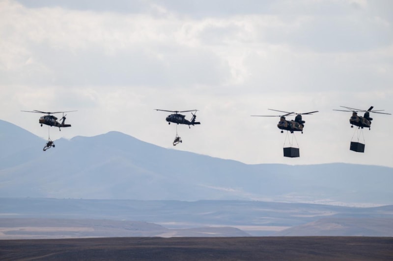 Fırtına obüslerinin hedeflerini tam isabetle vurması sonrasında "Skorsky" tipi helikopterler, topları ve CH-47 Chinook nakliye helikopterleri, mühimmat dolu konteynerleri alana taşıdı.
